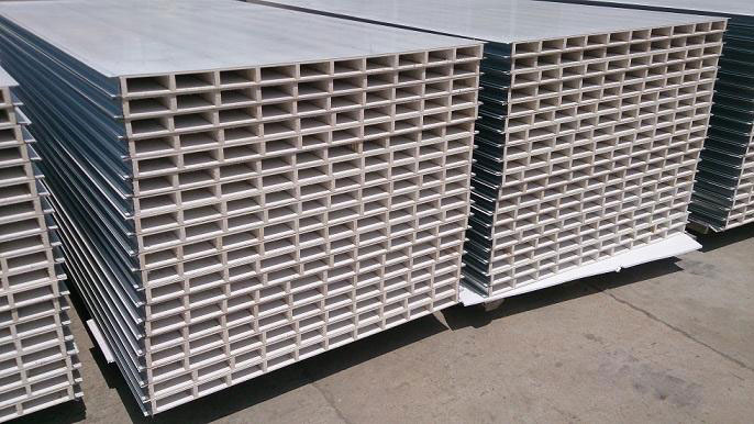 优点:保温、隔热、隔音、质量较轻、安装方便,耐火等级A级,价格略高于泡沫彩钢板。